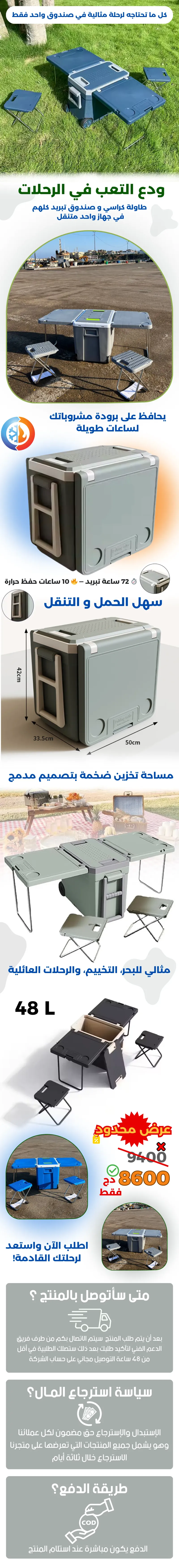 طاولة كراسي و صندوق تبريد كلهم في جهاز واحد متنقل